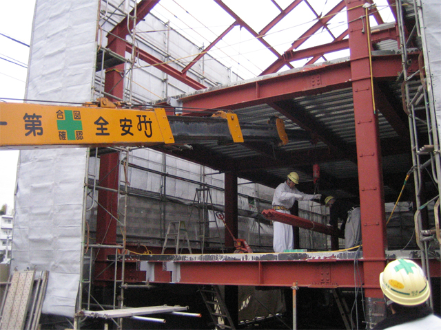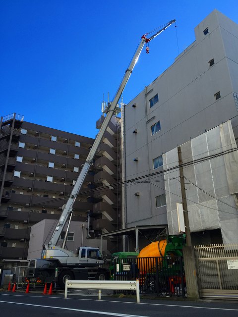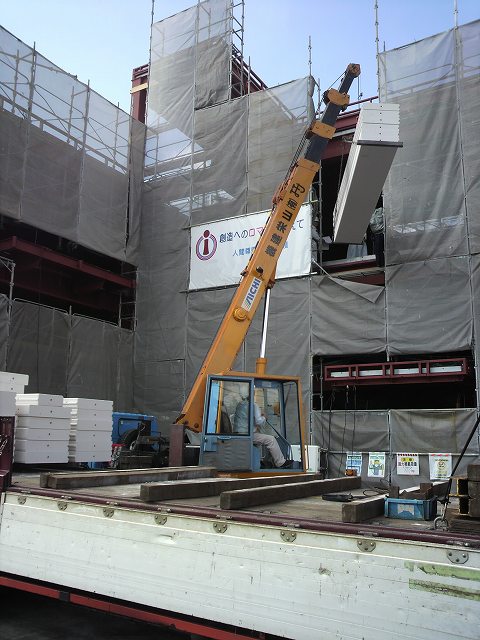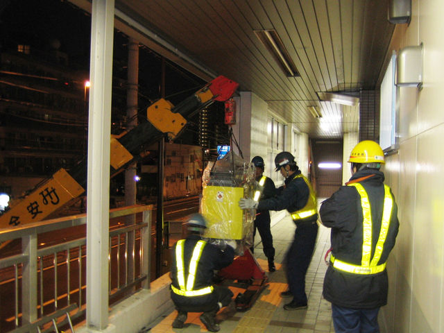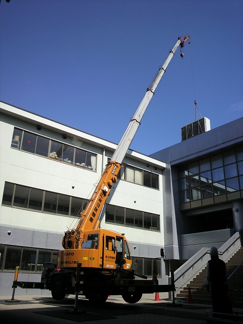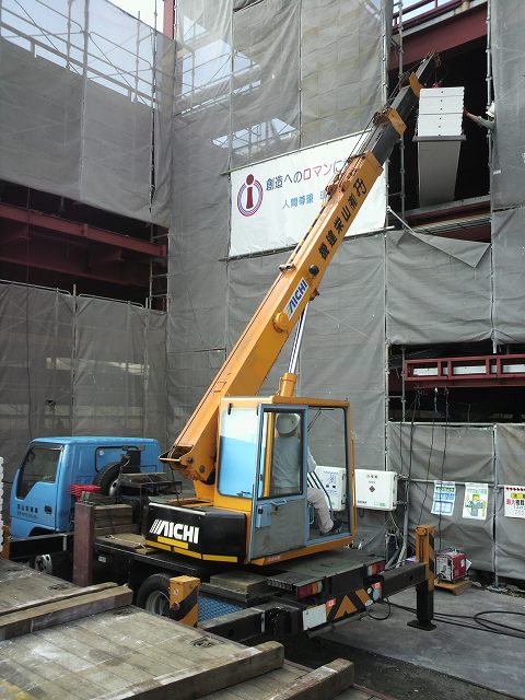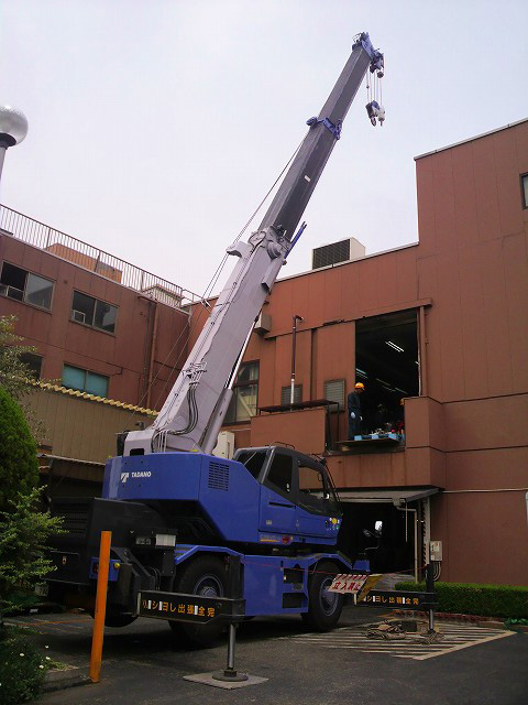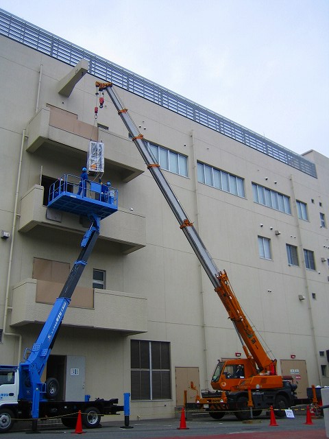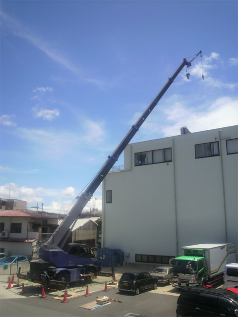重量物搬入のクレーン作業