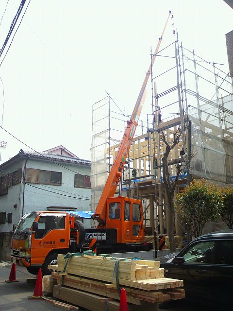 狭小地・木造建て方クレーン作業