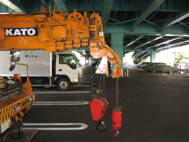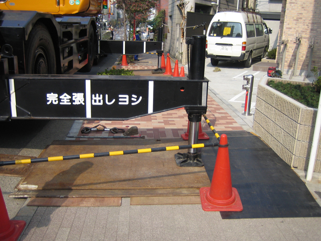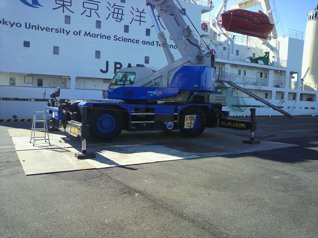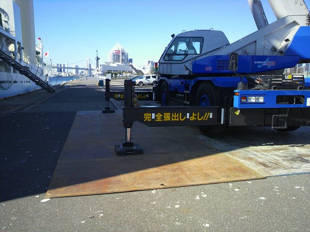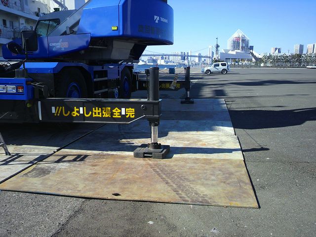 クレーン作業地盤の5×10敷鉄板養生