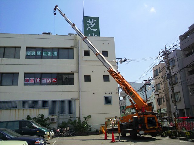 室外機の交換のクレーン作業